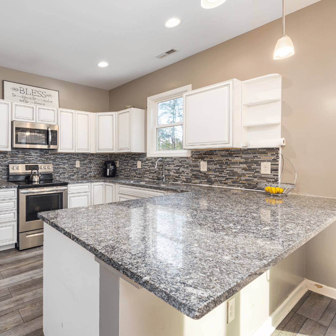 El granito es una piedra natural extremadamente duradera y resistente al calor, lo que lo convierte en una opción segura y elegante. Cada pieza es única, con vetas y colores naturales que le aportan carácter y sofisticación.