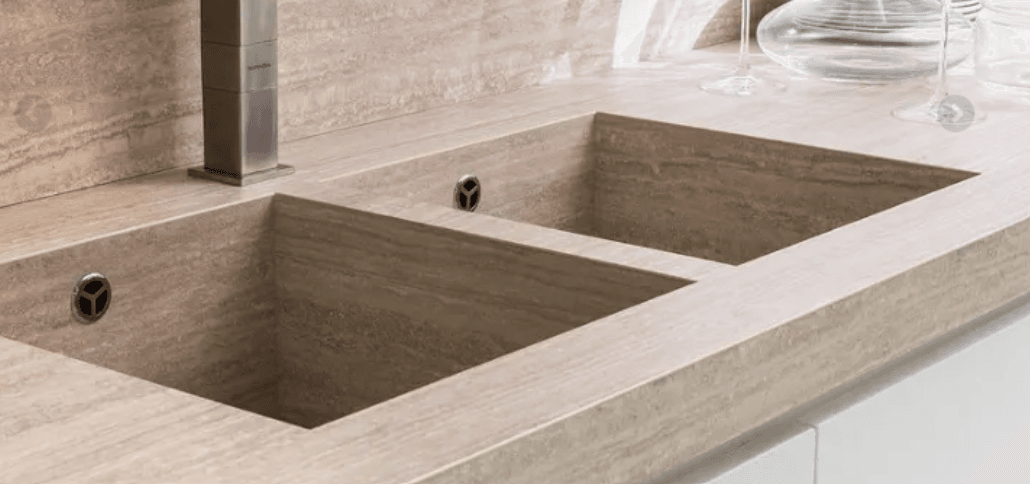 Es importante tener en cuenta que, al ser uno de los materiales para encimeras de cocina más poroso, puede absorber manchas si no se aplica un sellador protector adecuado. Marcas como Naturamia de Levantina o Sensa de Cosentino ofrecen soluciones tratadas con alta calidad y garantía