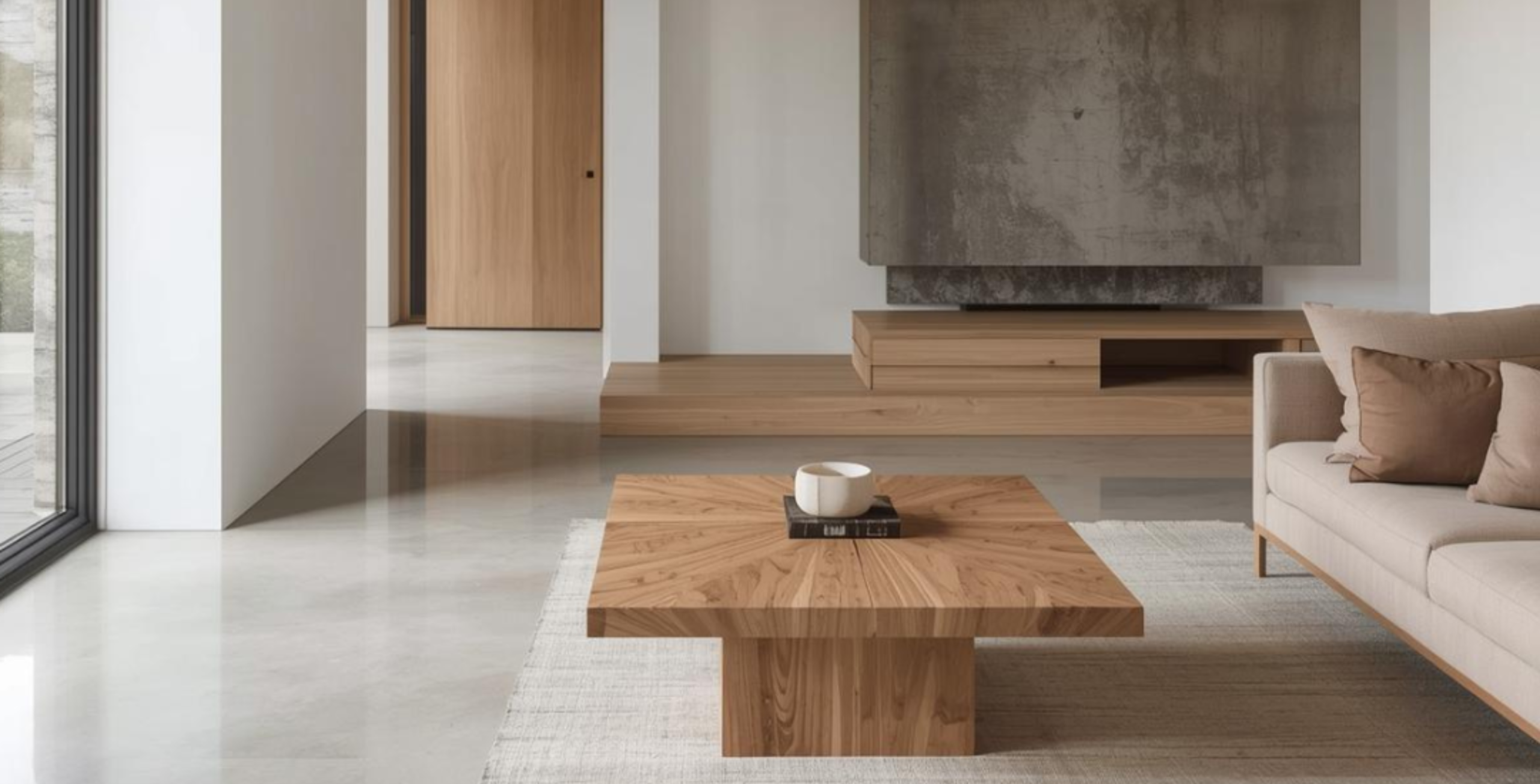 Por ejemplo, una mesa de madera natural puede servir como pieza central en una sala de estar minimalista, mientras que los suelos de cemento pulido o madera clara ofrecen una base neutra y funcional que complementa las paredes de tonos suaves como blanco, gris o beige.