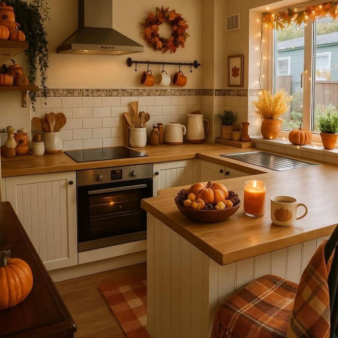 Prepara tu casa para otoño teniendo en cuenta que la cocina se convierte en el corazón del hogar en esta época. Organiza tu despensa con productos de temporada como calabazas, setas o manzanas, y recupera las tazas grandes para infusiones o chocolate caliente. Aprovecha también para revisar tu vajilla otoñal y darle protagonismo a las comidas reconfortantes.