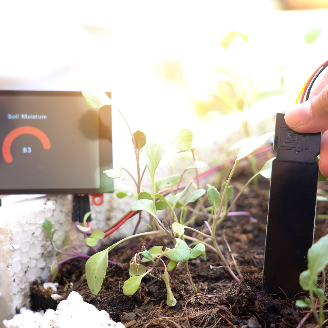 Este sensor es esencial para controlar la salinidad del suelo, ya que mide la cantidad de sales presentes en el suelo y nos indica si es necesario ajustar la frecuencia o cantidad de riego para evitar la acumulación excesiva de sales que podrían dañar las raíces de las plantas.